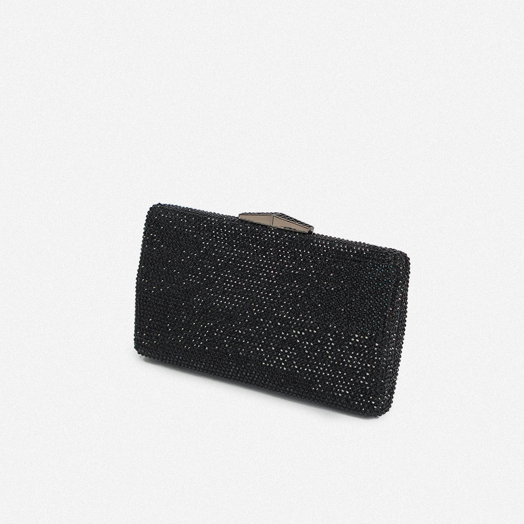 Introducing the Mini Handle Clutch. This luxurious clutch is adorned with shimmering Swarovski stones and boasts the most coveted design of the season. Elevate your style with this exclusive accessory...