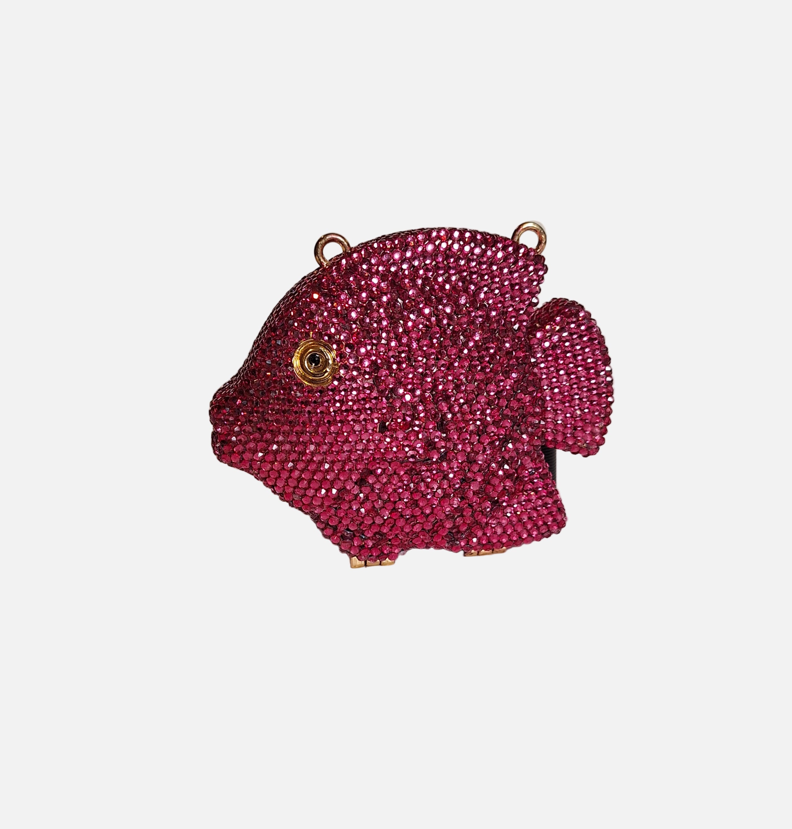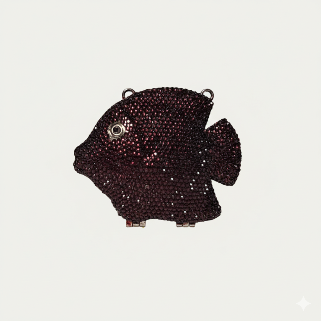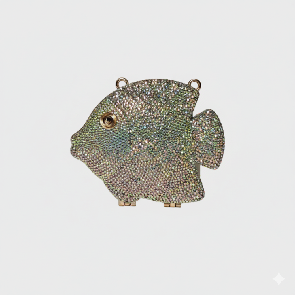 Elevate your style with the Metallic Fish Clutch, featuring shimmering Swarovski stones expertly set on a sleek metallic fish-shaped body. This unique, eye-catching accessory combines artistic design with luxurious sparkle, making it perfect for making a bold statement at any event. Compact yet striking, it’s the ideal clutch to complement...